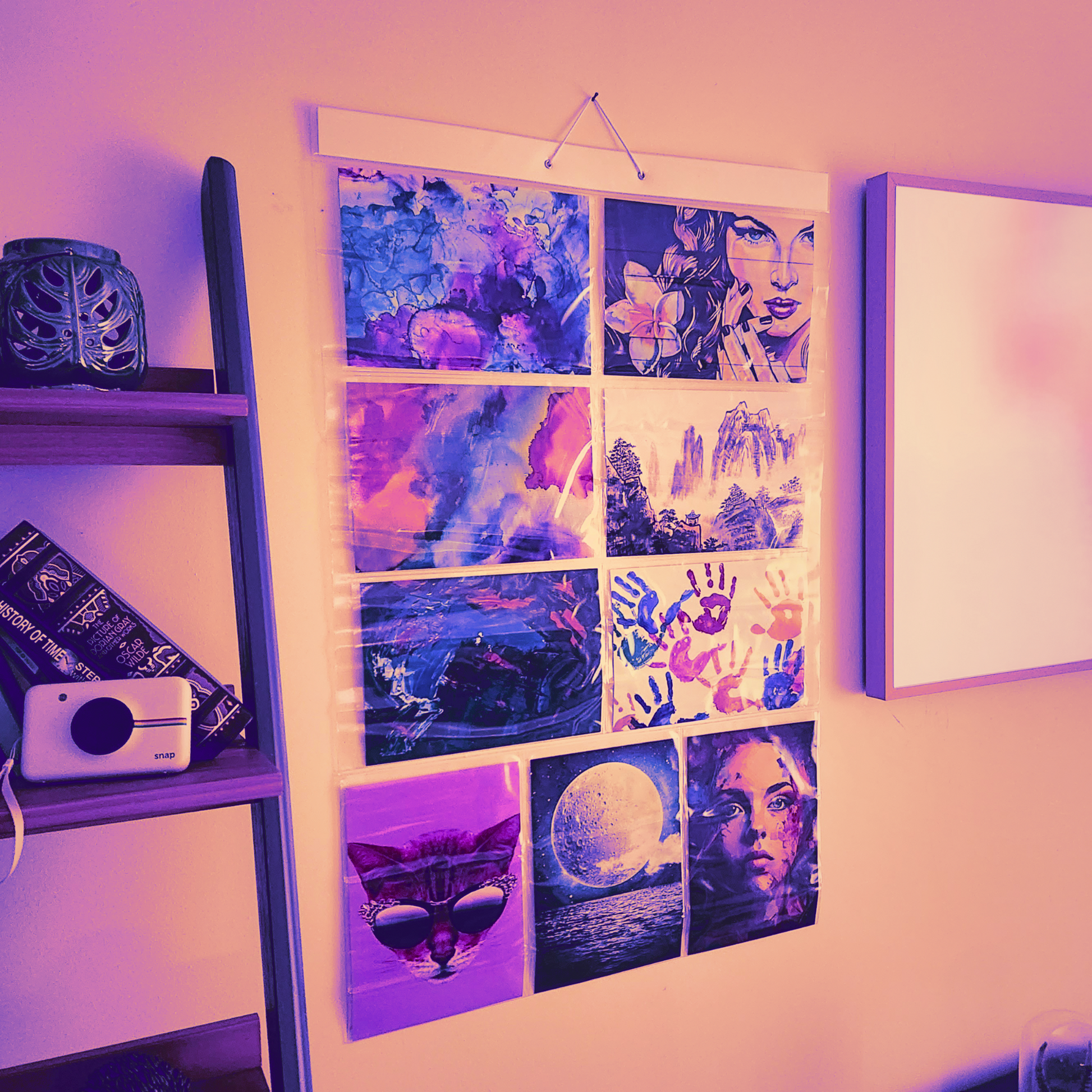 Display lots of your A4 artwork and more without the need for fiddly photo frames.